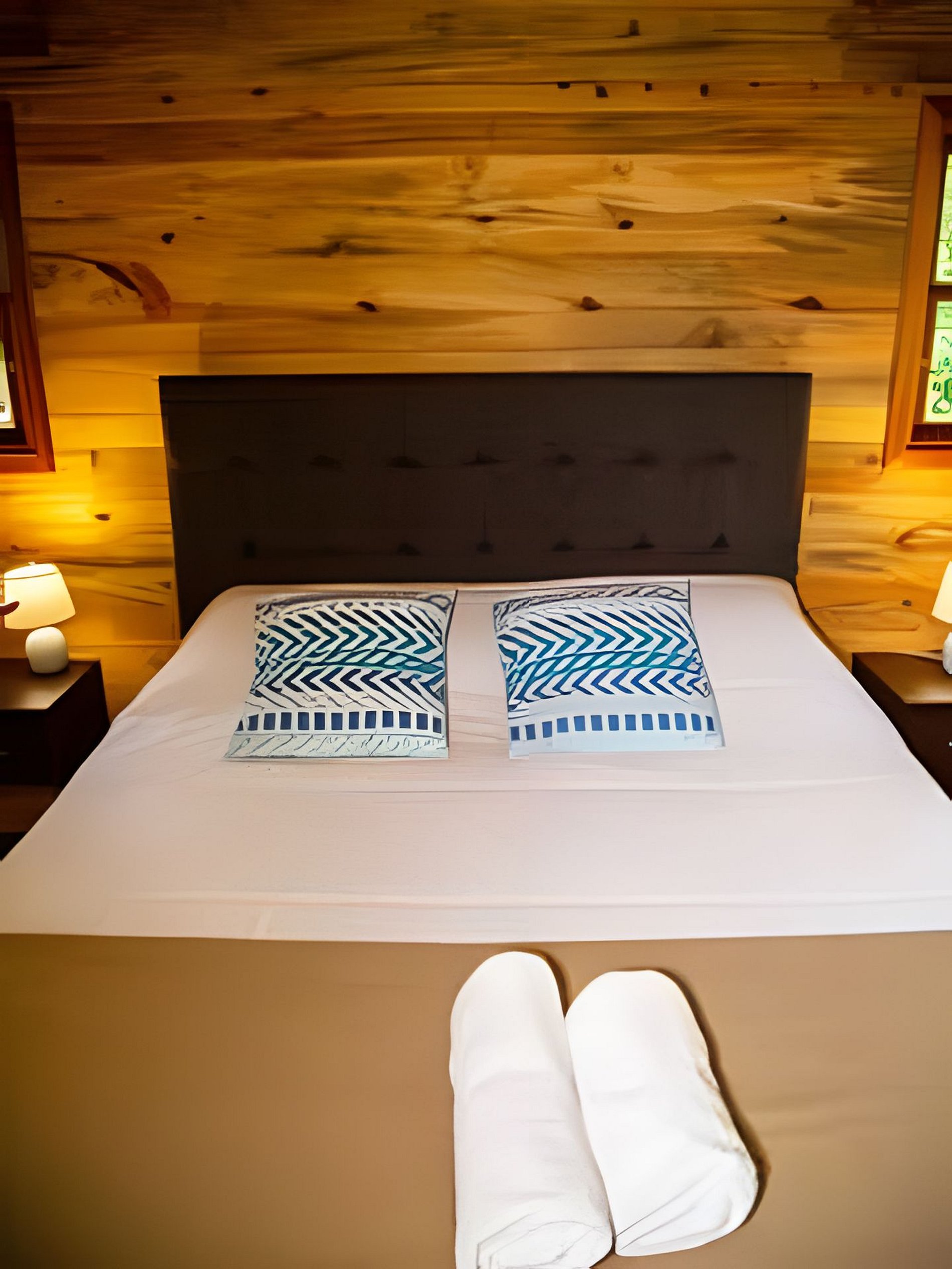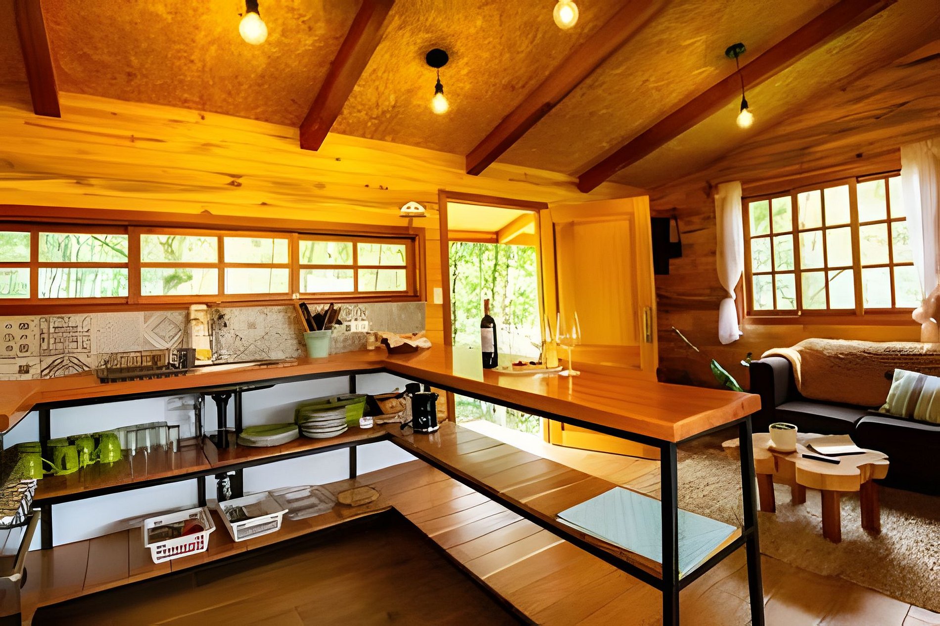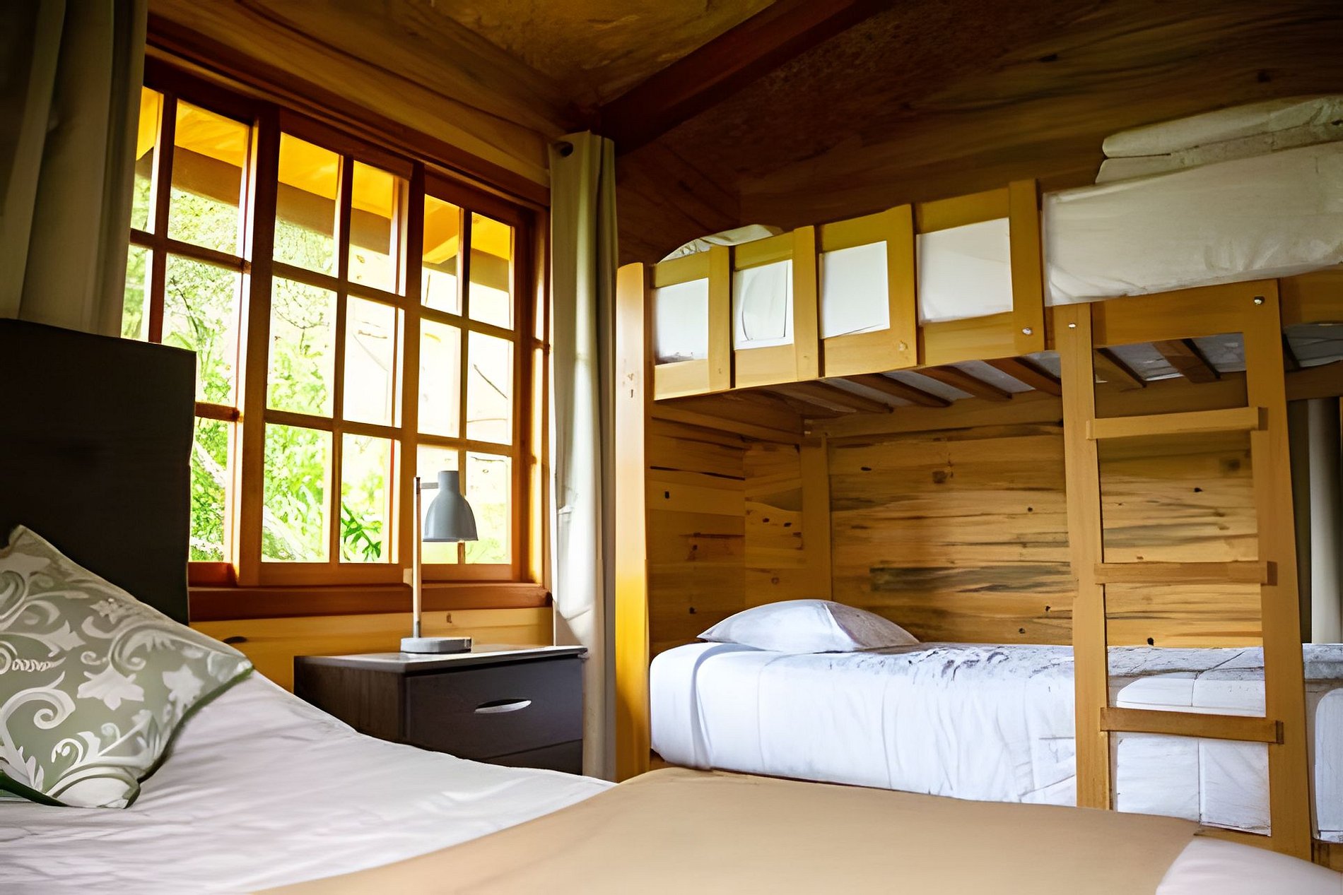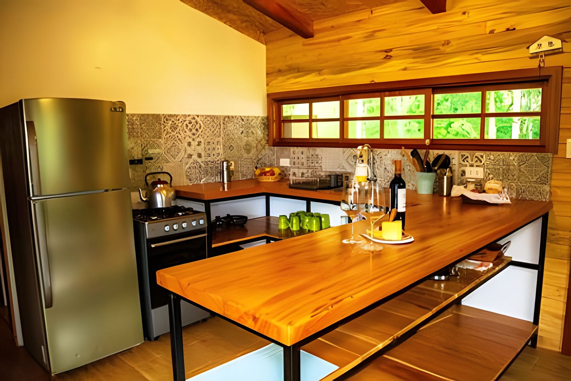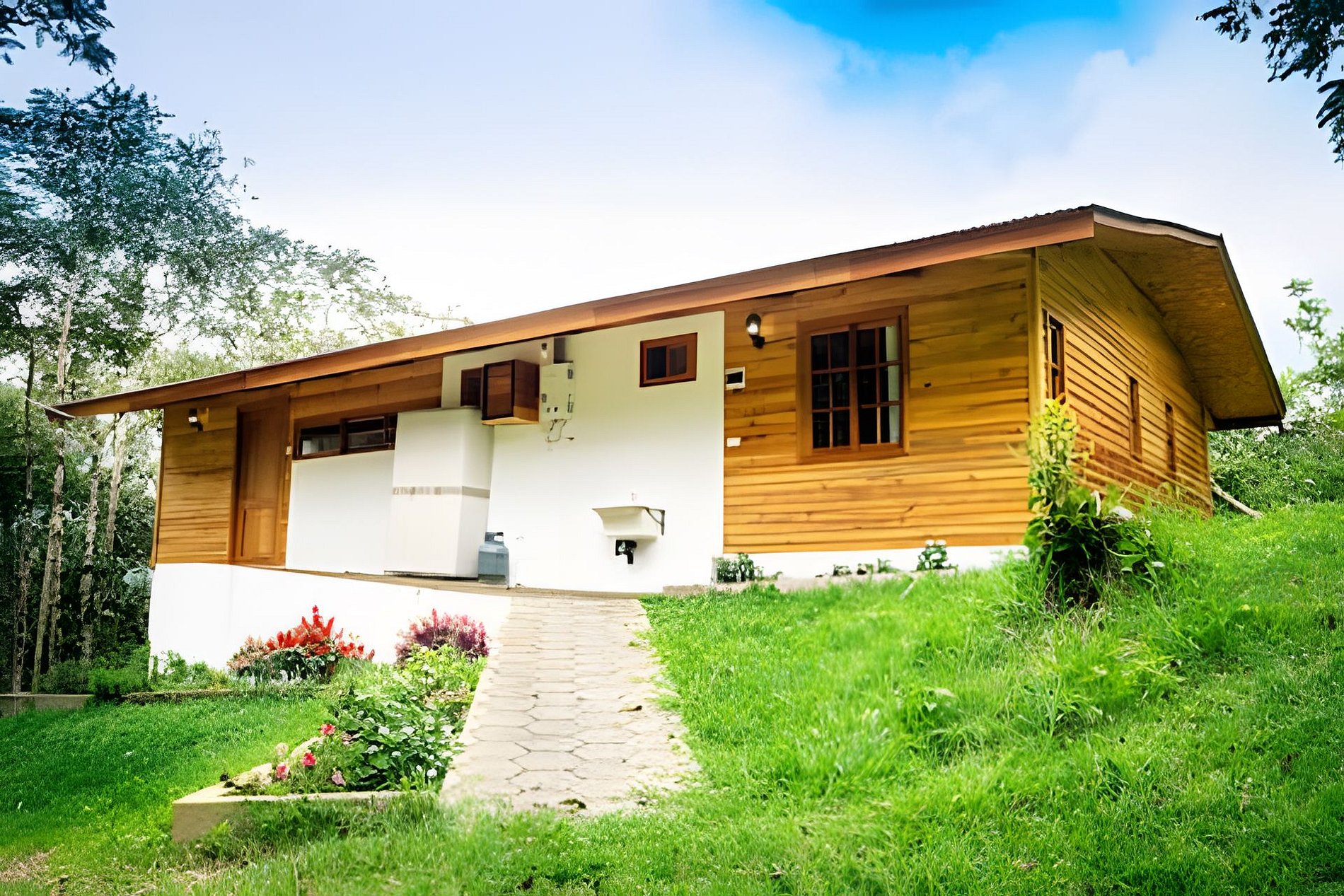 Te hospedarás en una cabaña con tres habitaciones y dos baños, cocina completa, sala de Tv y comedor con vista panorámica